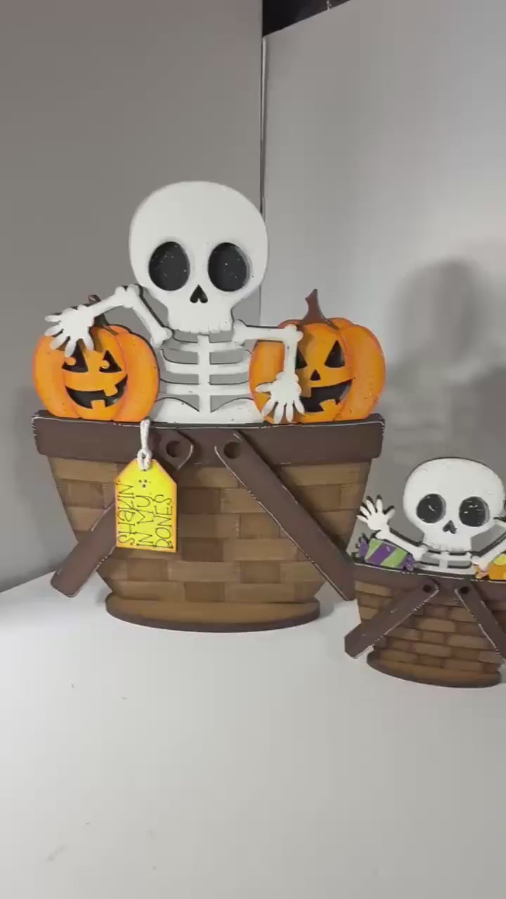 Cute Skeleton Insert for the Flower Basket, Interchangeable DIY Wood Paint Kit