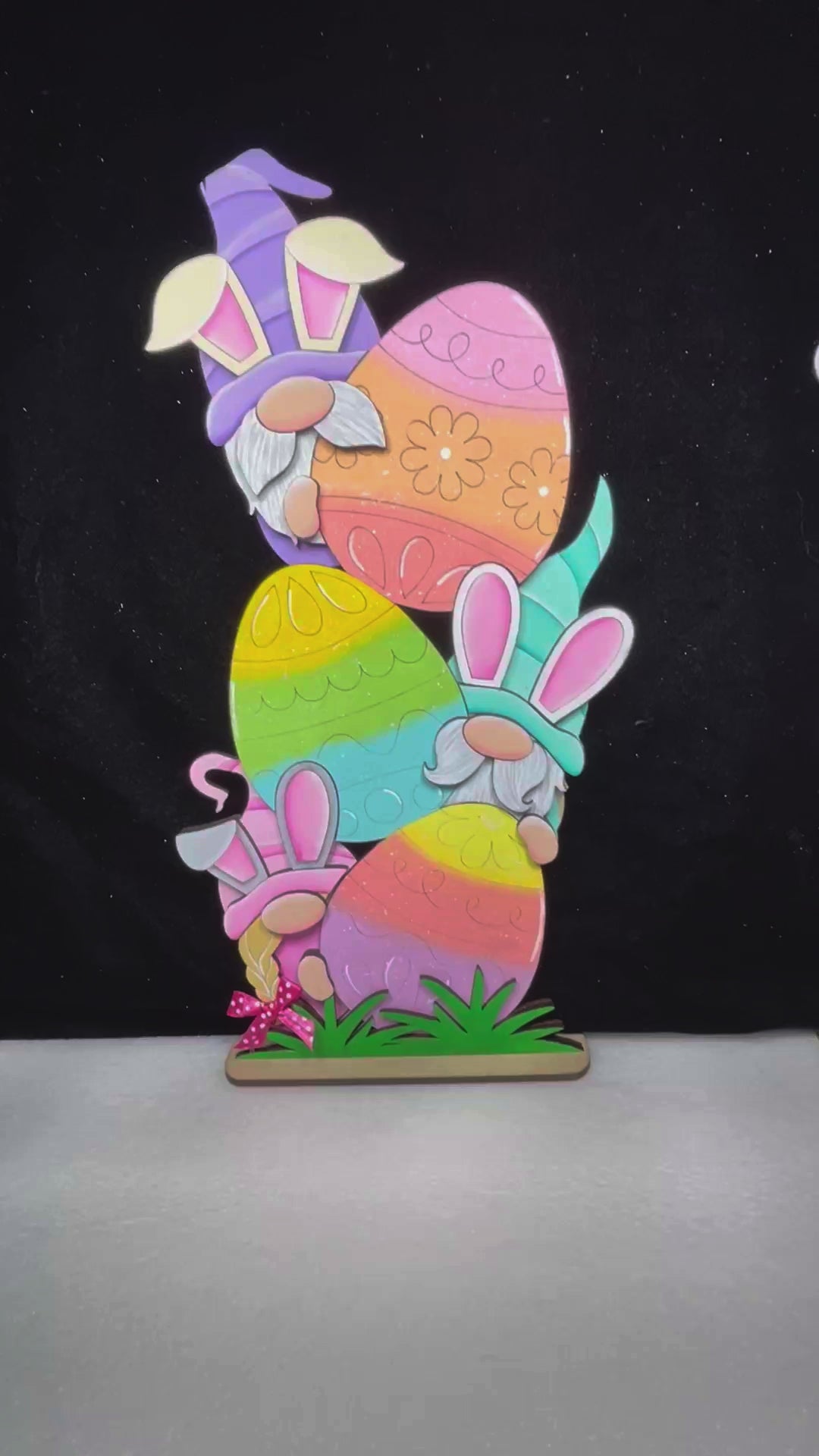 ✔ Charming stacked gnome bunny & eggs design – Fun & festive