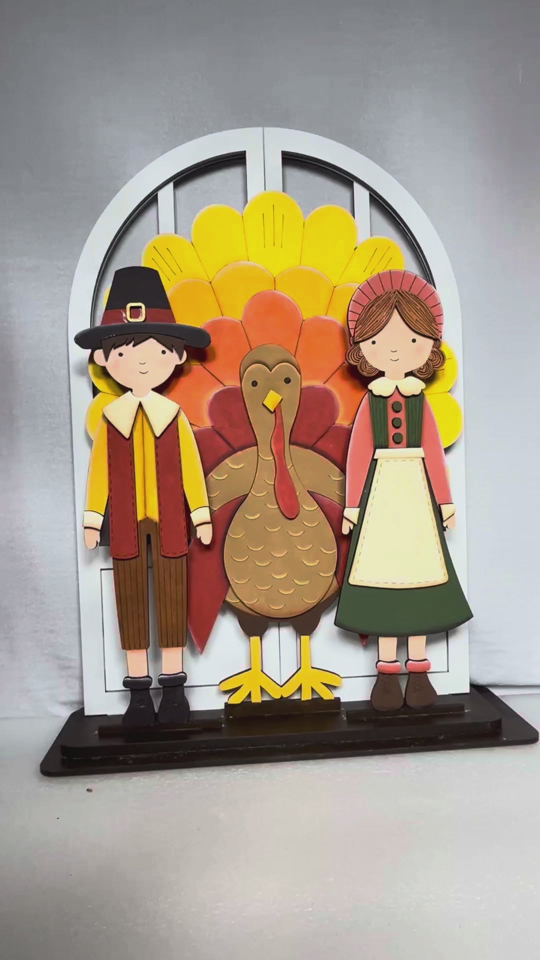 DIY Interchangeable Arched Window Thanksgiving Pilgrims Shelf Sitter Insert – Seasonal & Holiday Designs