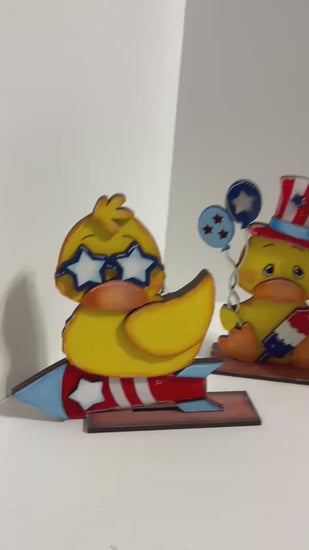 DIY Patriotic Duck Shelf Sitters – Paintable Wood Kit with Stand - Tiered Tray Decor