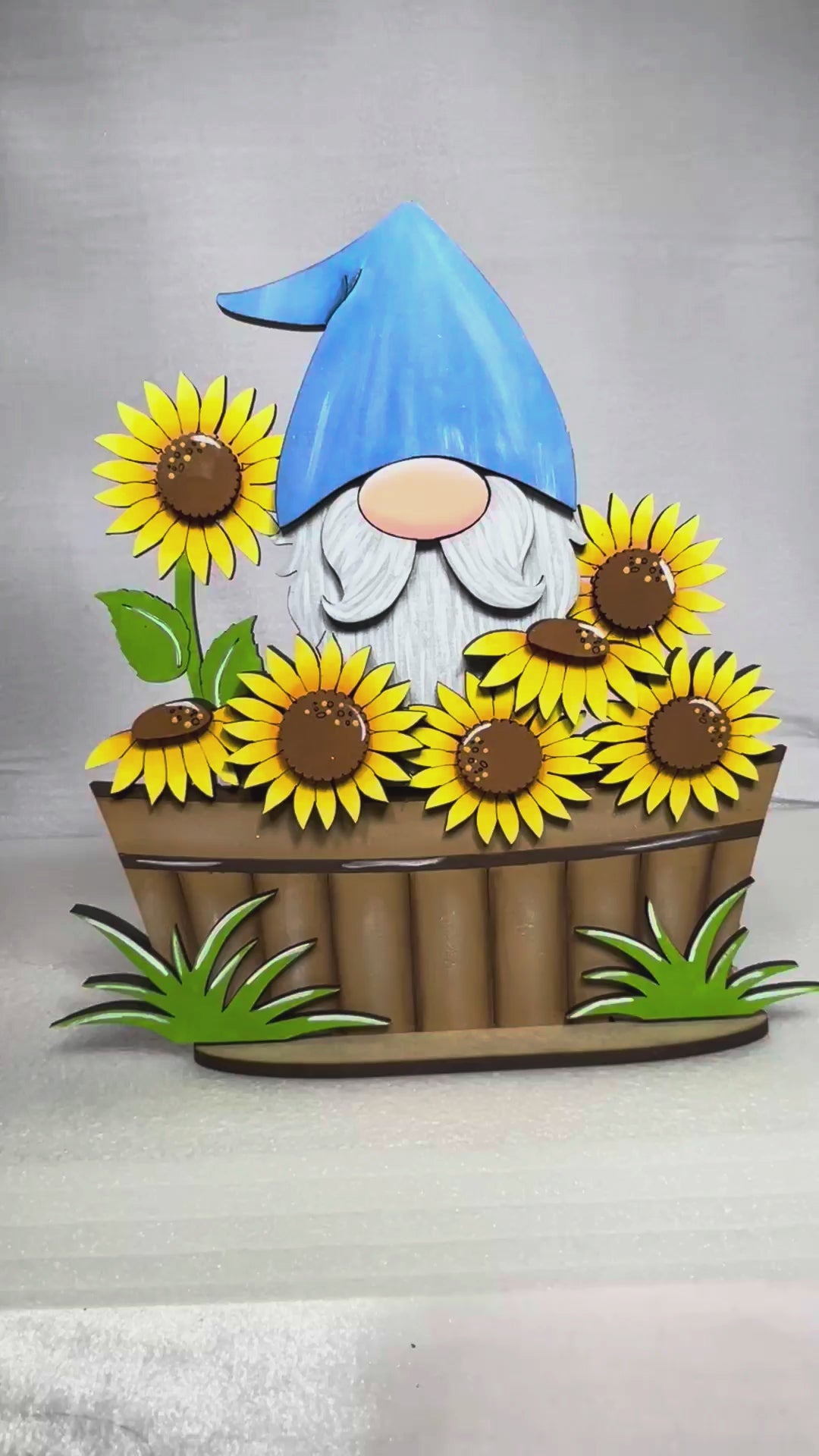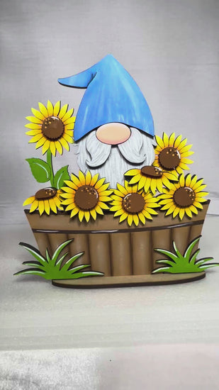 • Layered gnome design with sunflower bucket