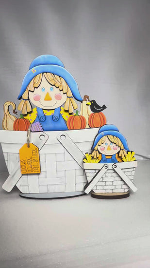Fall Scarecrow Girl Insert for the Flower Basket, Interchangeable DIY Wood Paint Kit
