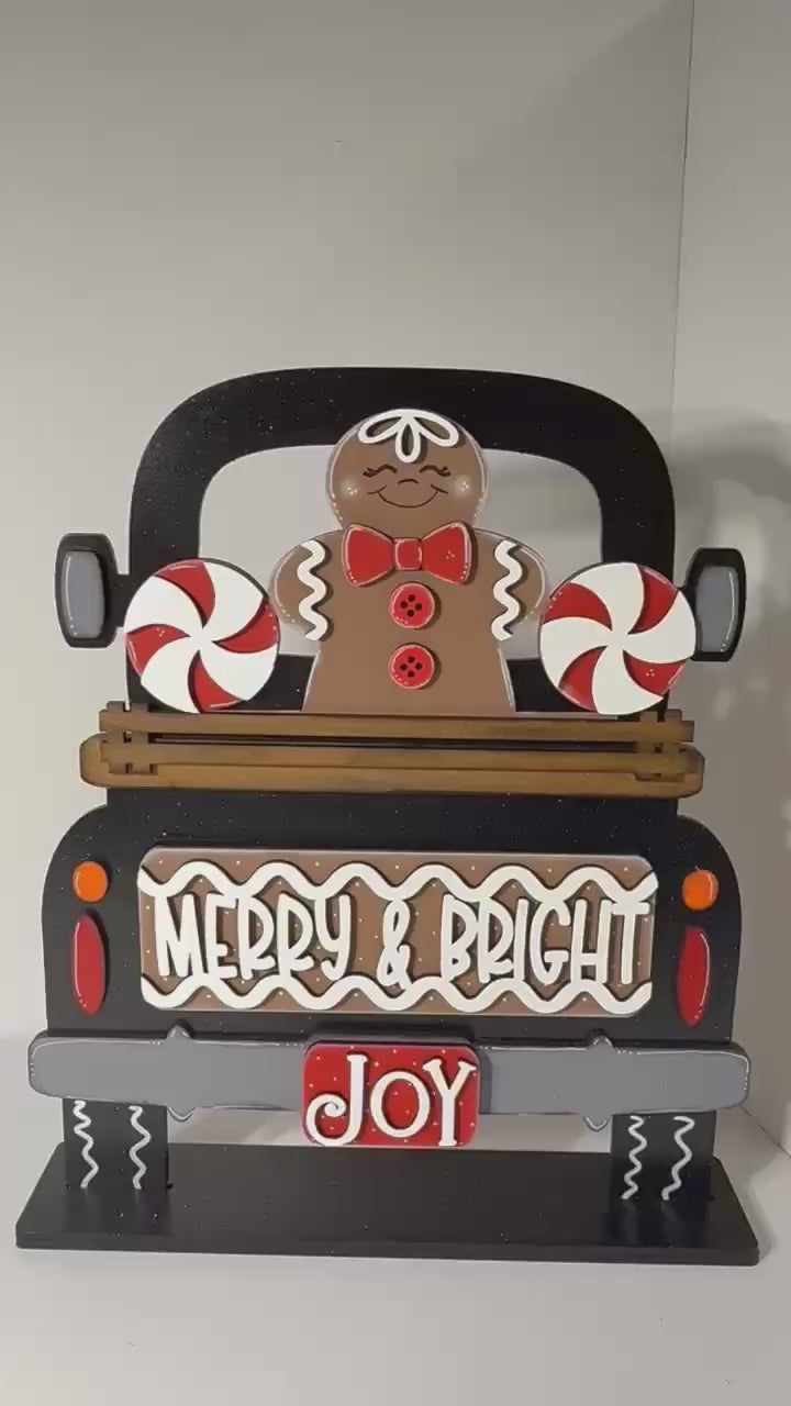Interchangeable Farmhouse Merry and Bright Gingerbread Truck Insert, DIY Truck Kit, Interchangeable Farmhouse Truck DIY Kit