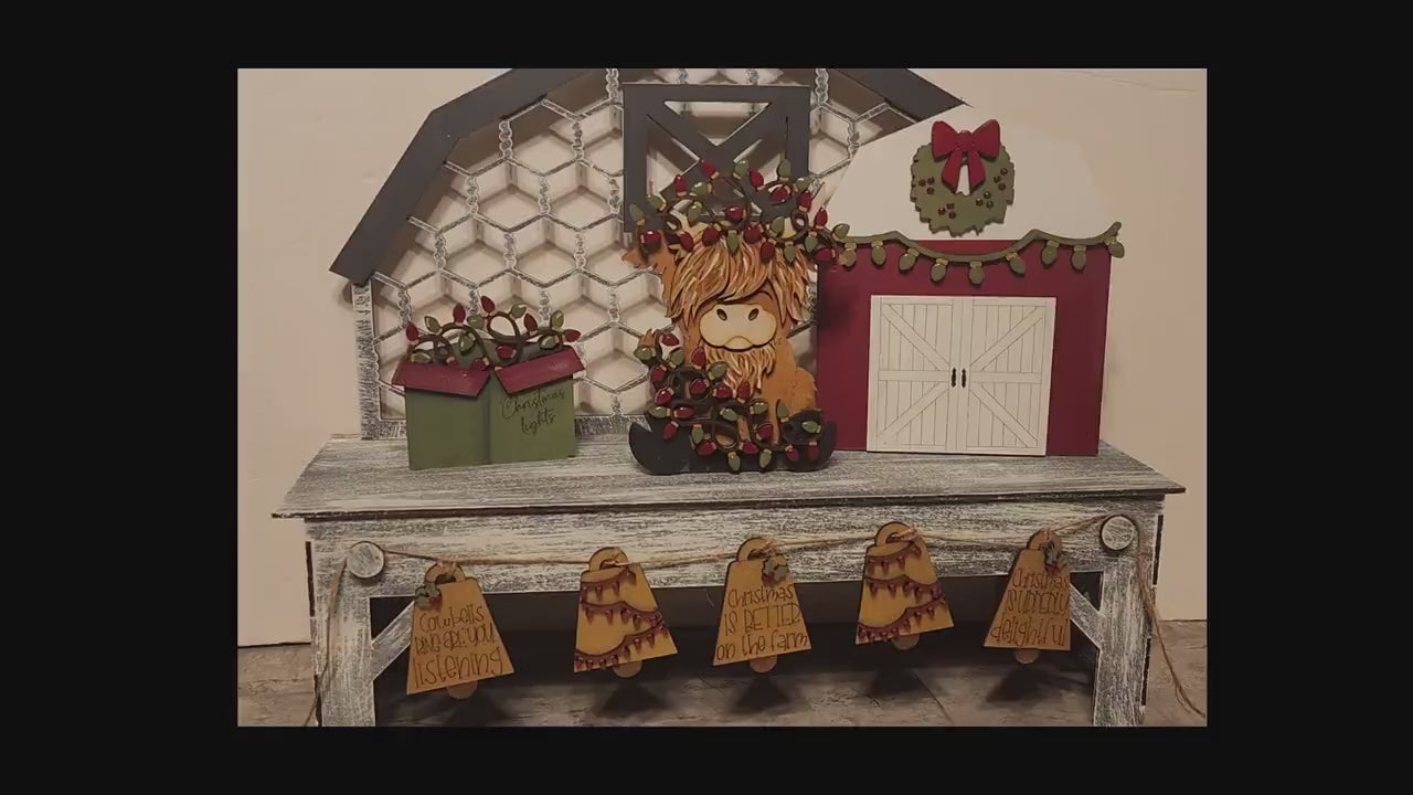 Christmas Highland Cow with Lights Insert Set. This is a finished item. You may purchase either the insert set (one available) and/or the bench. The bench will need to be glued together for shipping. I will include an instructional video for gluing. It's simple.
