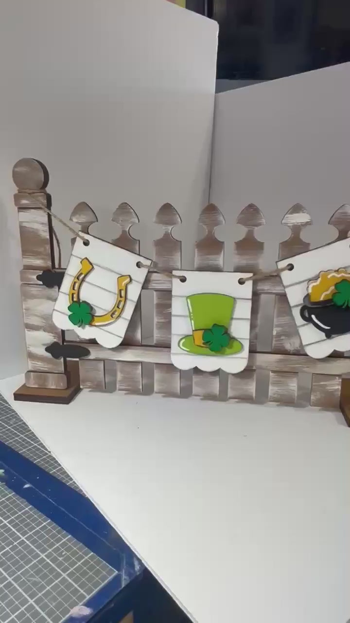 St. Patrick's Clover Mini Banner Set - DIY Wood Paint Kit - Mini Banners for Picket Fence or Hello Sign