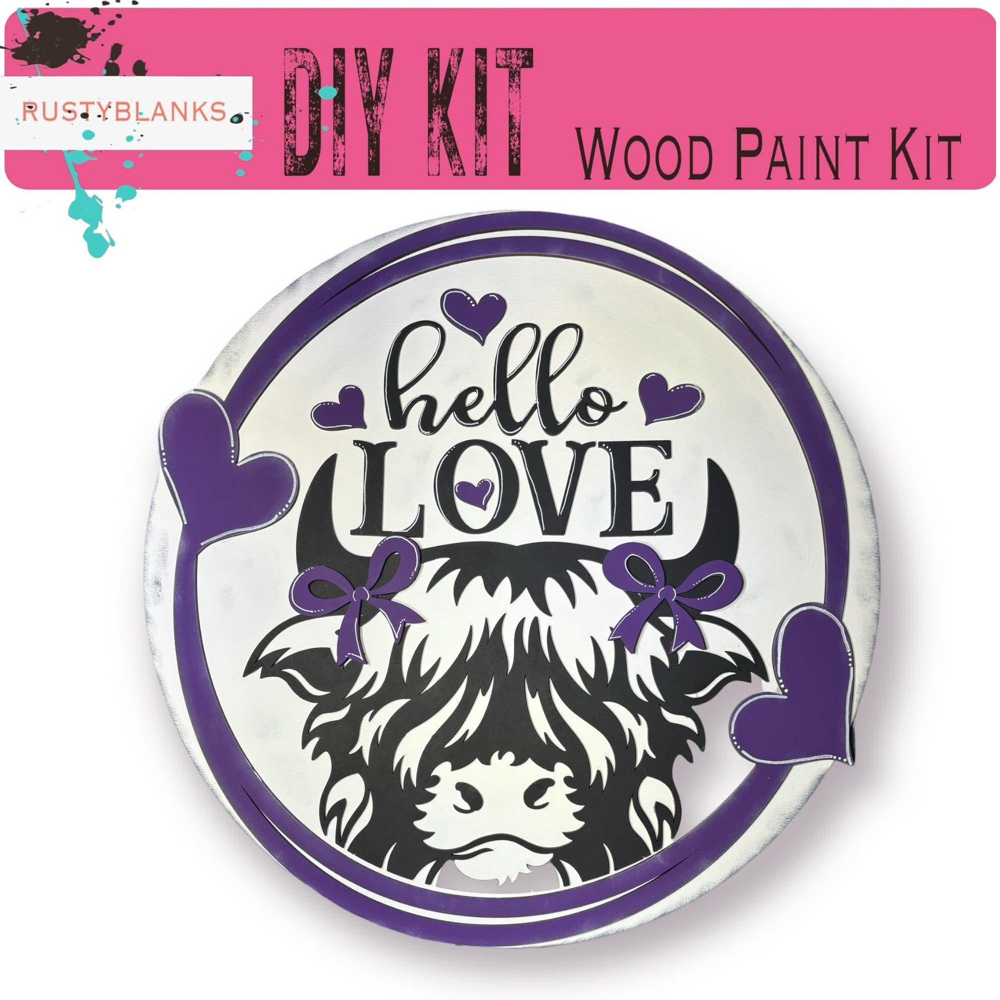 Valentine's Day Highland Cow Hello Love Front Door Hanger