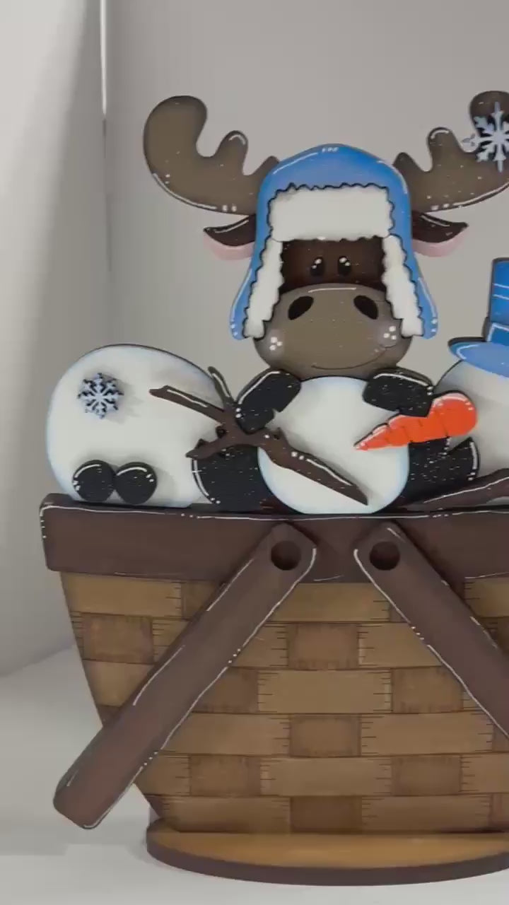 Winter Moose and Snowman Insert for the flower Basket DIY Kit